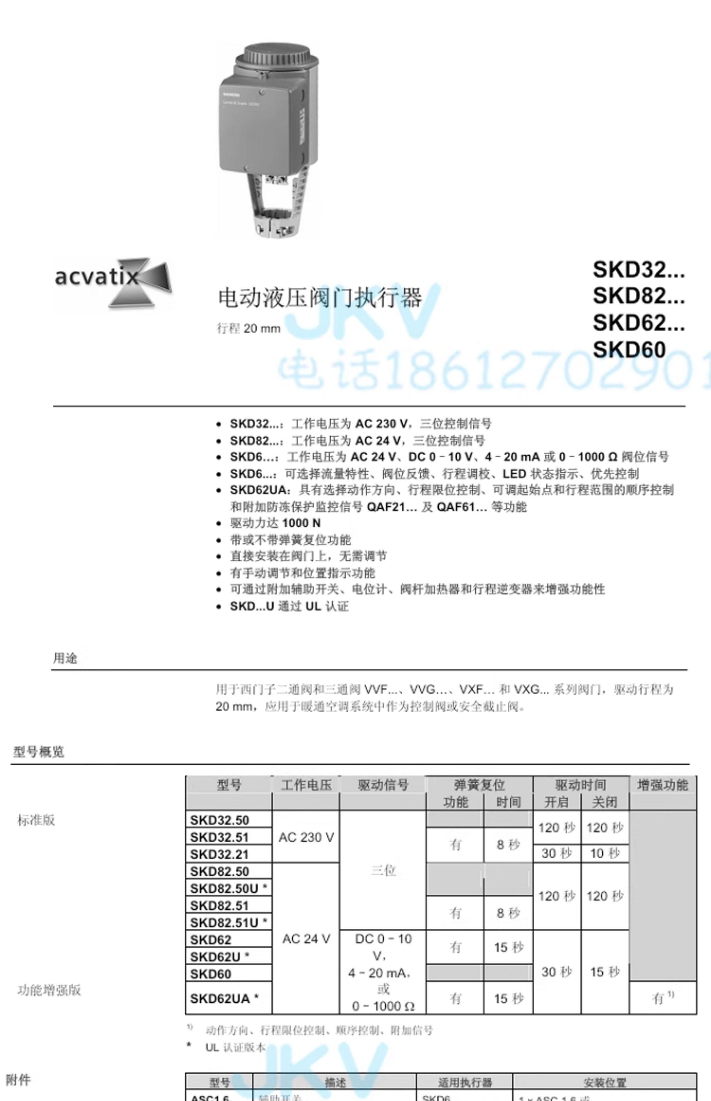 西门子原装执行器SKD/SKC/SKB60/62电动比例调节阀蒸汽暖通温控阀